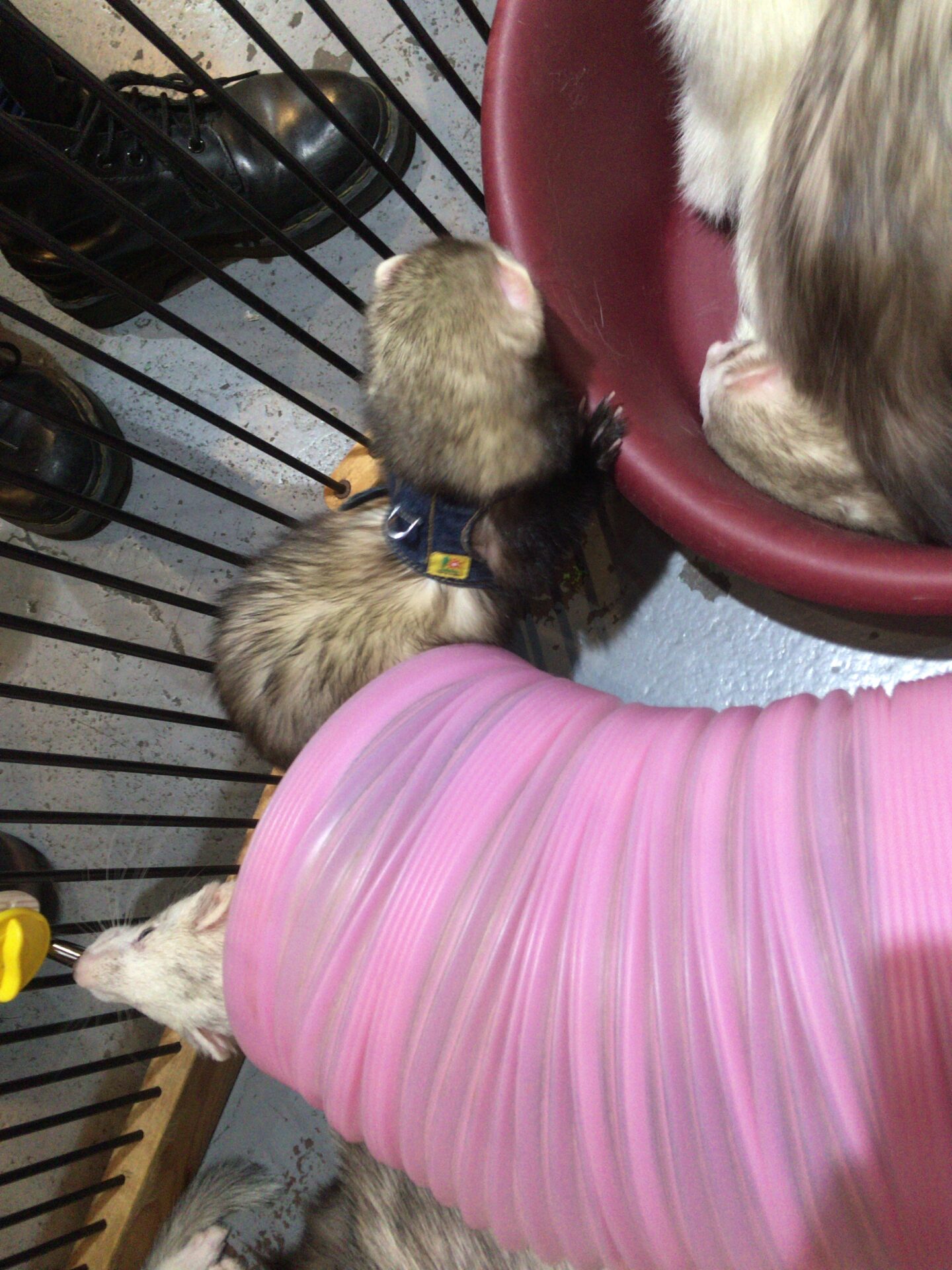寝てる先輩フェレットさんを心配したりおもちゃに興味はありましたが基本的にフェレットさんに対してはスルー…😂