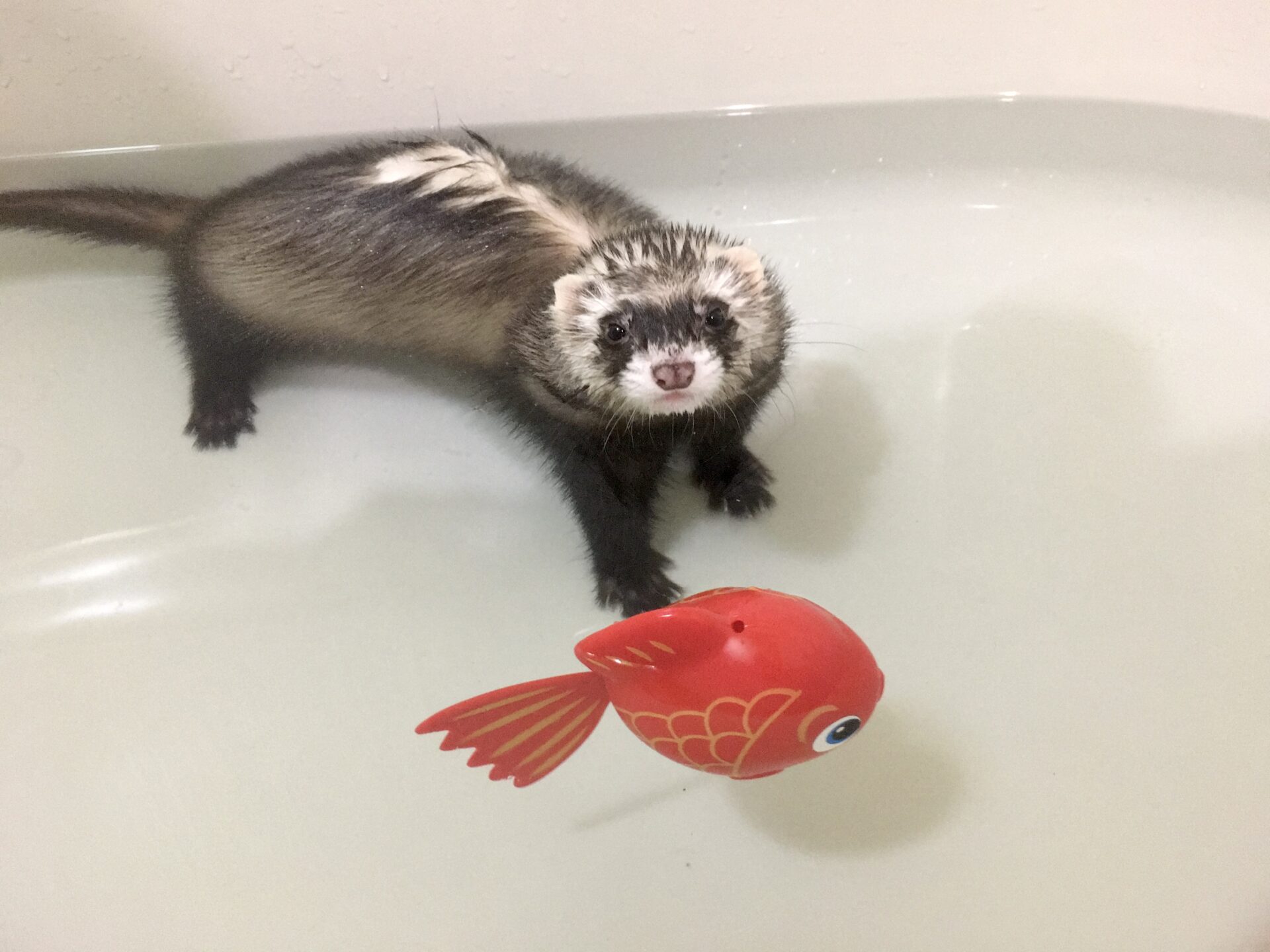 フェレットさんをお風呂に入れる時は足が届く位置までぬるま湯を入れてくださいね💦