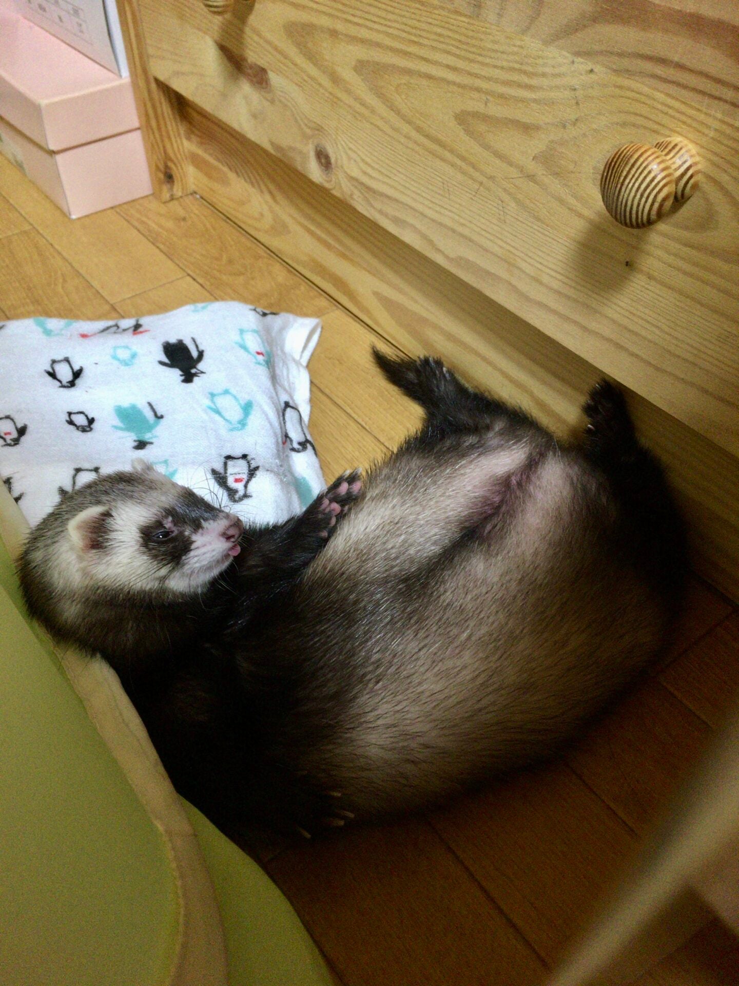 もしくは本人が人間だと思ってるので人間が寝てる姿を見て寝る時は仰向け・ヘソ天で寝ると覚えてたのかもしれません😂