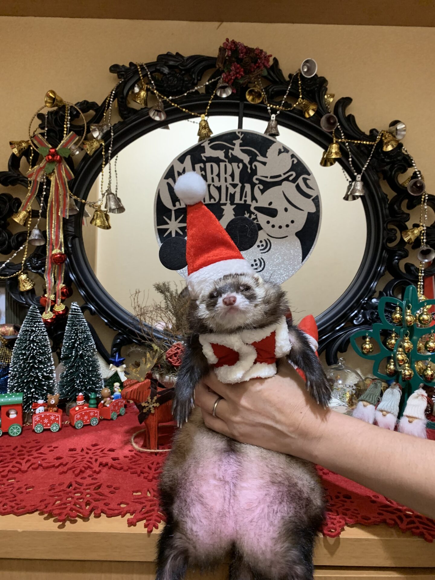 なんの日だか分からずサンタさんを着せられてなんだか不満そうでした🤣